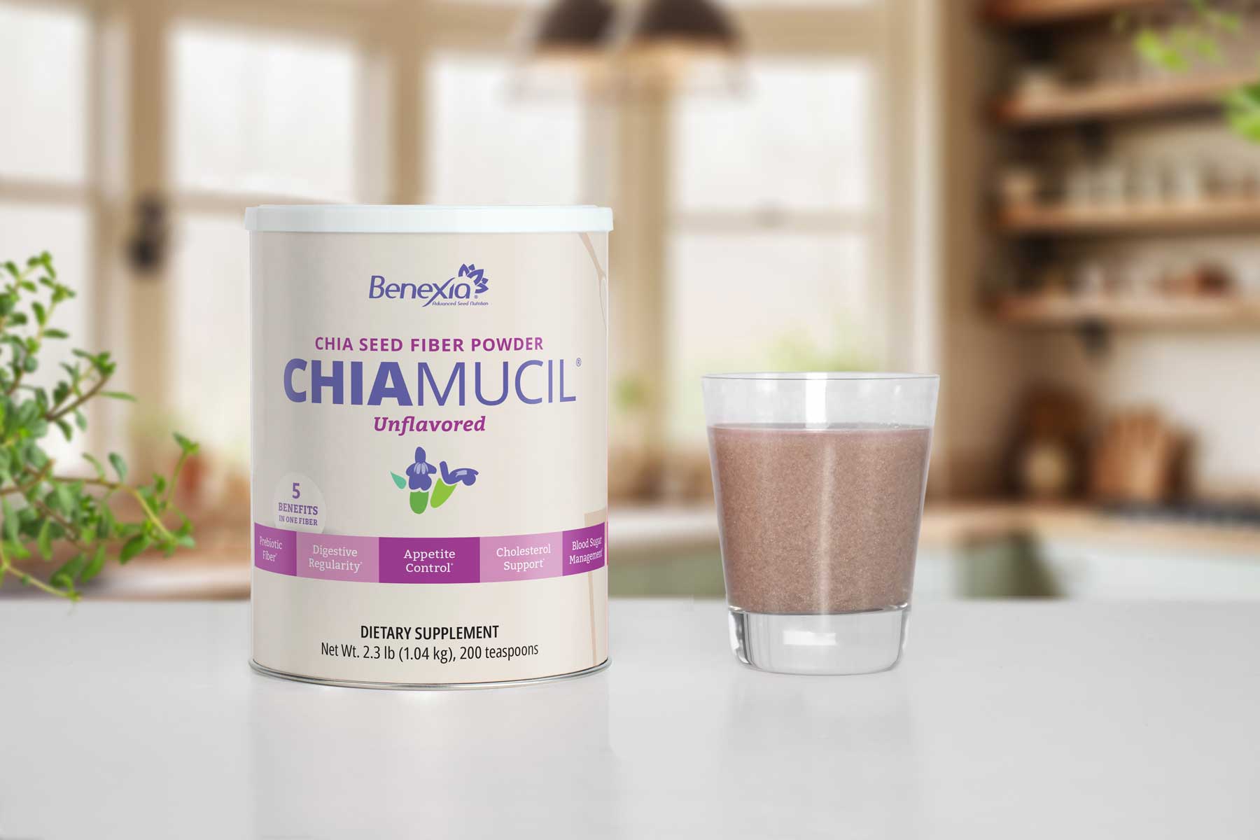 Chia Fiber is 100% natural. Some separation in the glass is normal. Not recommended for carbonated beverages.